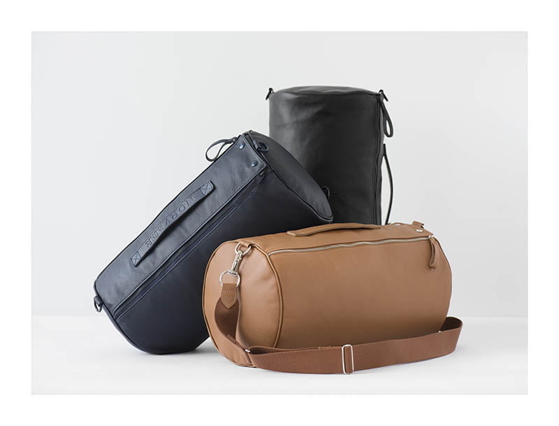Everything packs down tidily within a sleek holdall in supple leather, which is available in black, navy or tan.