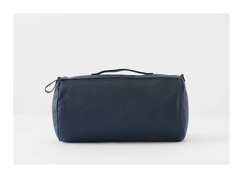 Outer: calfhide leather holdall in black (powder coated black hardware), navy (nickel hardware) or tan (nickel hardware).